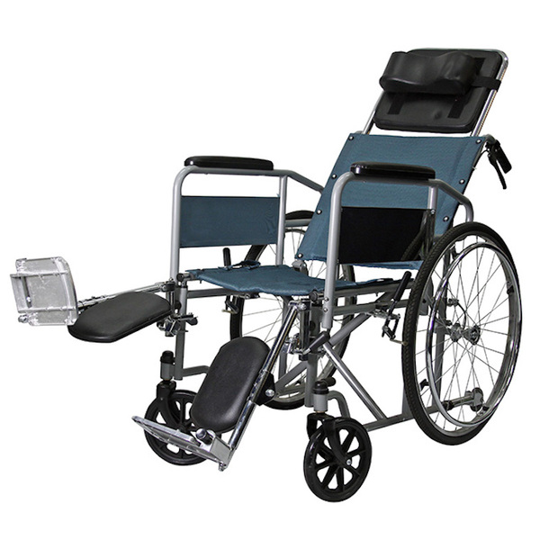 Silla de ruedas de ruedas neurológica Estructura de Acero cromado color Plata de 1,2 mm. de espesor Diámetro estructura 25mm. Material del textil: Azul Oxford textil, Nylon, algodón y esponja. Posa piernas fijo ajustable en altura en tres posiciones. Posa pies aluminio regulable en altura. Posa brazos desmontable con apoya brazos de PVC Respaldo reclinable – convertible en camilla con 10 botones para regular la inclinación Posa cabeza con 2 botones para regulación de altura Material de la correa del reposapiés: Azul Oxford textil, Nylon, algodón y esponja. Rueda delantera de TPR + PE, diámetro de 20 cm gris Rueda trasera: neumático sólido, borde de mano de acero, diámetro: los 60cm Gris Freno de mano tipo Side Herramientas en bolsillo trasero. Ancho asiento 43 cm. Ancho total 65 cm. Cruceta una. Palanca de inclinación, costado derecho con una rueda de TPR + PE de 7cm de Diametro Soporta hasta 136 kgs. Peso total silla 23,35 kg. *Blunding recomienda utilizar este producto bajo prescripción médica.
